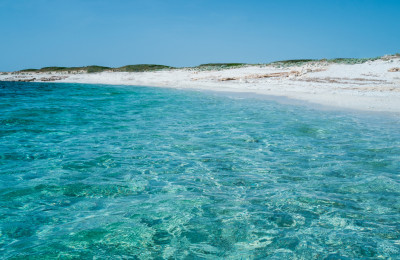 Questa spiaggia di Cabras (Oristano, Costa Centro-Ovest Sardegna) è così chiamata per la presenza di granelli di quarzo tondeggianti multicolore. Mare tra il verde smeraldo e il profondo blu, è meta ideale per gli amanti del surf vista la presenza incessante del maestrale.